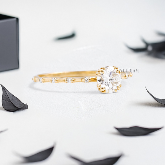 Round Lab Diamond with Trio-Prongs Ring and Distanced Diamonds on Band - YDJLR118