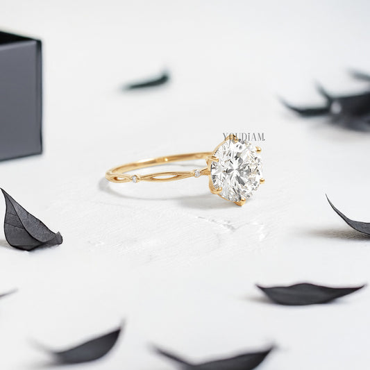 Round Lab Diamond with Side Diamonds Ring - YDJLR102