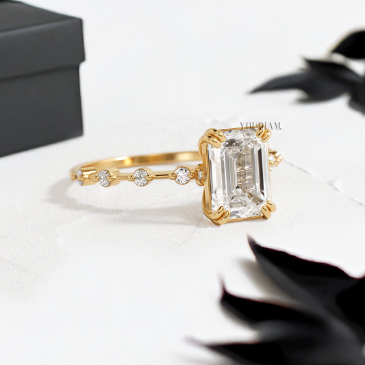Asscher Lab Diamond with Side Diamonds Ring - YDJLR119