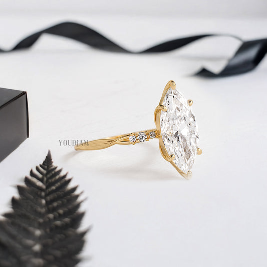 Marquise Lab Diamond on Twist Style Band Ring - YDJLR183