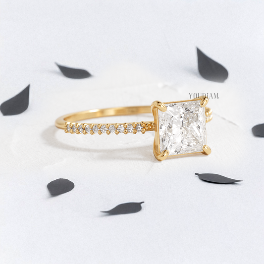 Princess Lab Diamond with Scattered Accent Diamonds Ring - YDJLR116