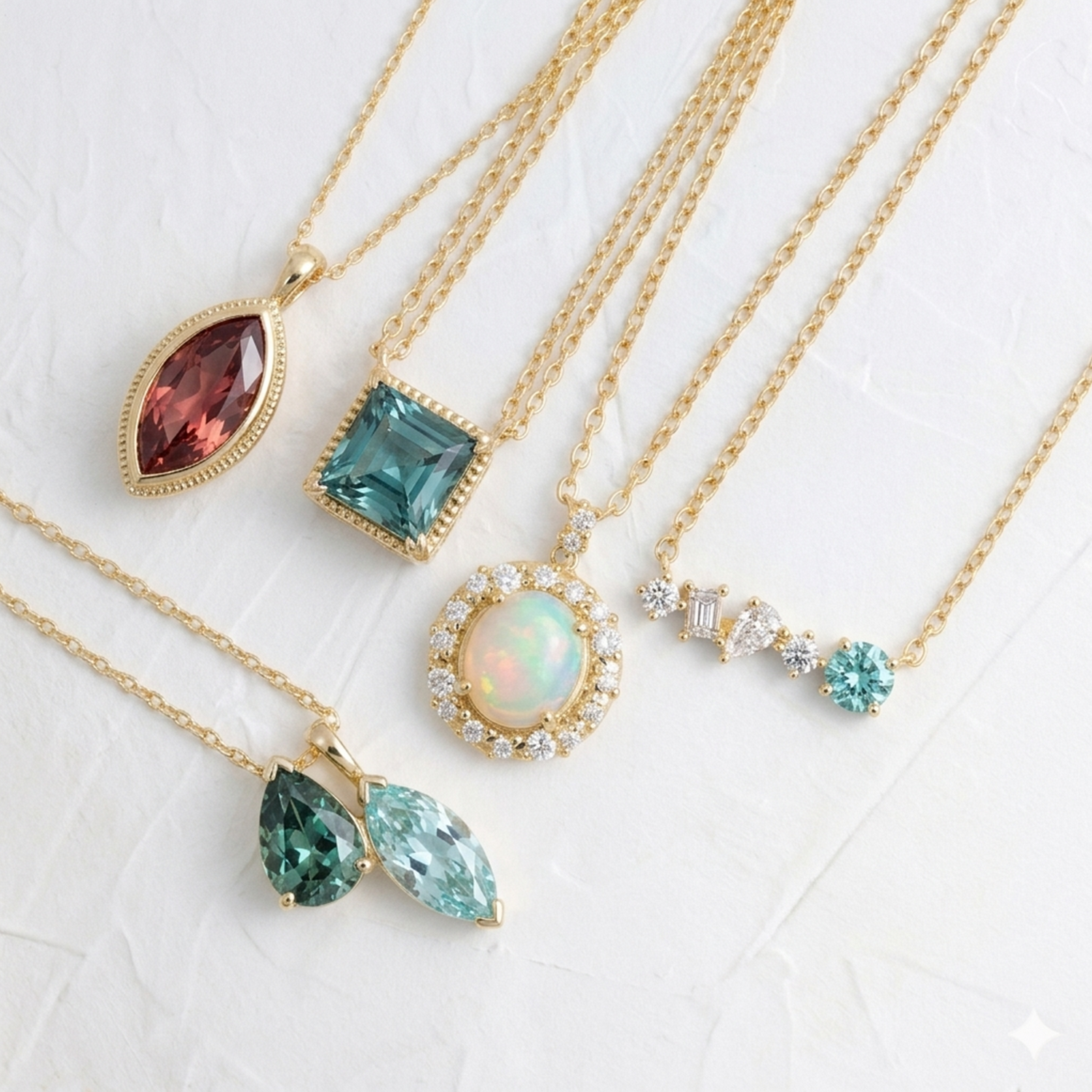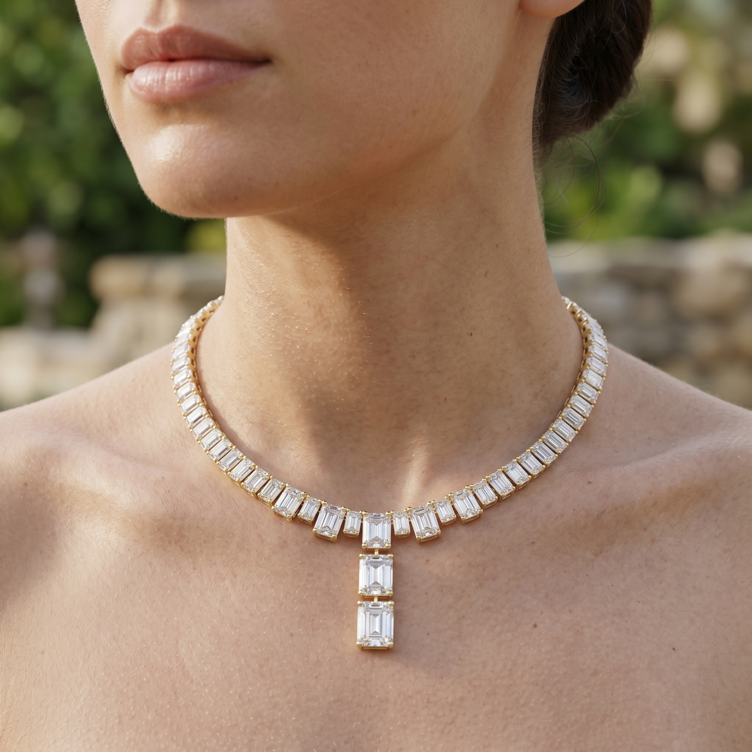 Mix of Six Baguette and Two Round Lab Diamonds Pendant and Anchor Chain - YDJLP02