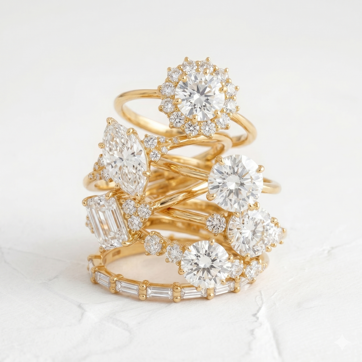 Curved Band with Marquise, Tapered Baguette, Pear, Mixed Cut Diamonds Band - EUDJLR54