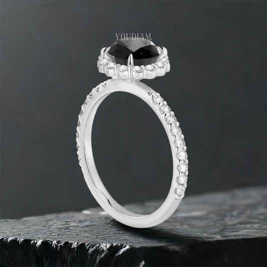 Round Salt and Pepper Diamond Ring with Halo and Dainty Band, Night Sky Style Ring - EUDJLR52Regular price From $623.00 USDRegular priceUnit price / per$1,246.00 USDSale price From $623.00 USDSale