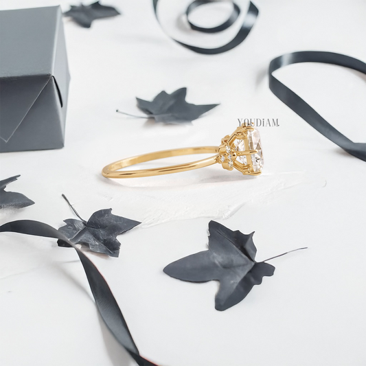 Oval Lab Diamond with Flora Accent Diamonds Ring - YDJLR41