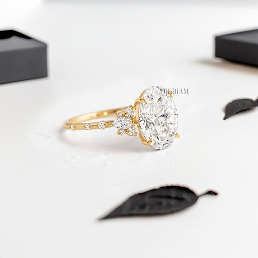 Oval Lab Diamond with Side Marquise Stones and Accent Diamonds Ring - YDJLR62