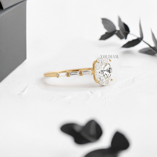 Oval Lab Diamond with Double-Prongs and Side Diamonds Ring - YDJLR36