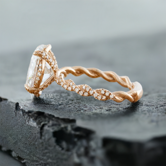 Oval Lab Diamond with Diamond Pave Twisted Rope Band, Oval Lab Diamond Ring - EUDJLR64