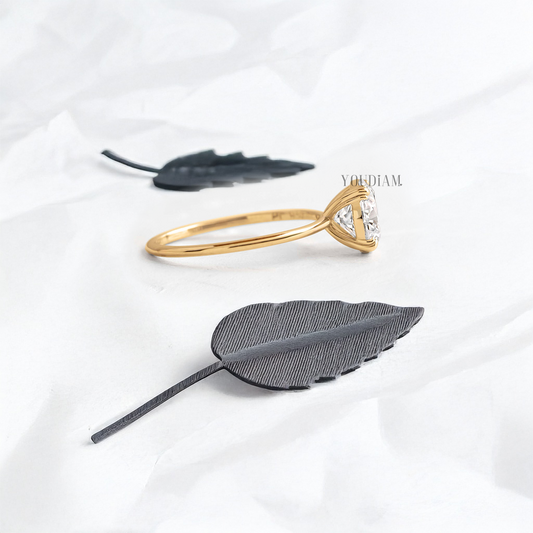 Round Lab Diamond with Trio-Prongs Solitaire Ring - YDJLR04
