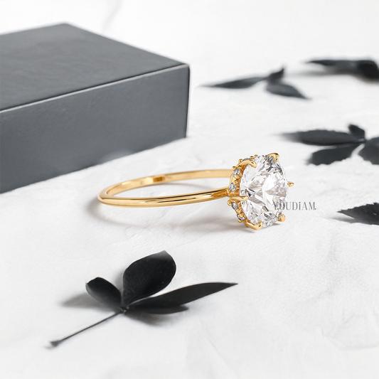 Round Lab Diamond with Accent Diamonds Ring - YDJLR01