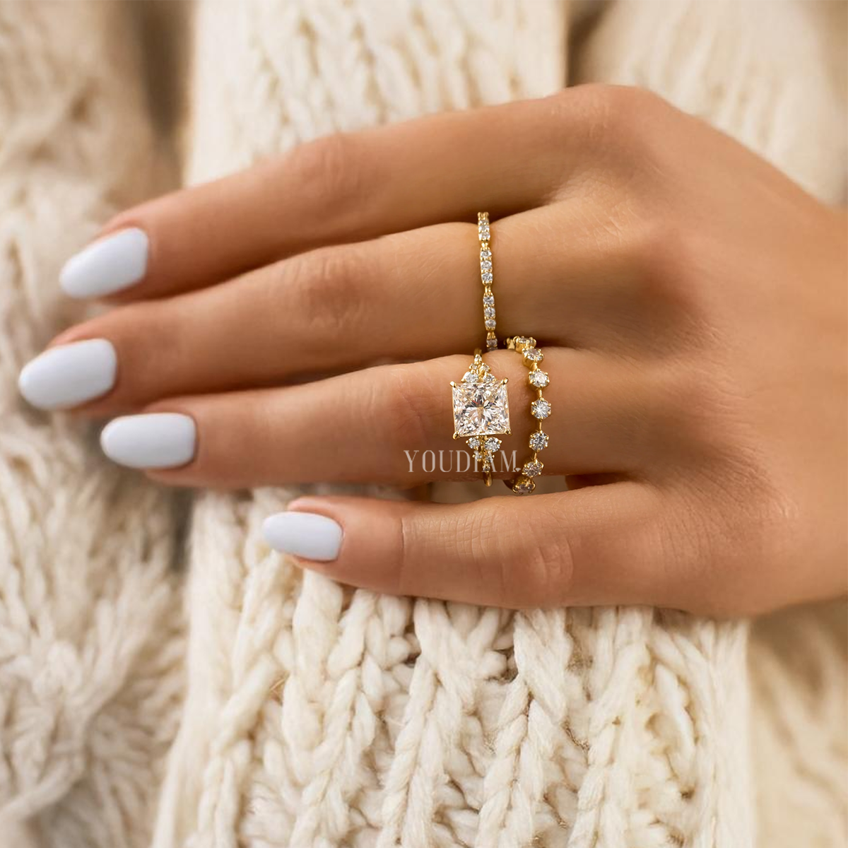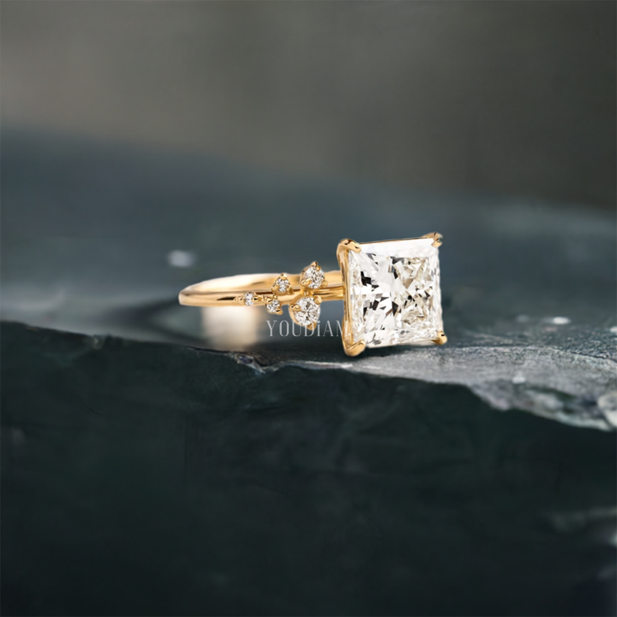 2ct Princess Cut Diamond Ring With 10 Accented Diamonds - EUDJLR45