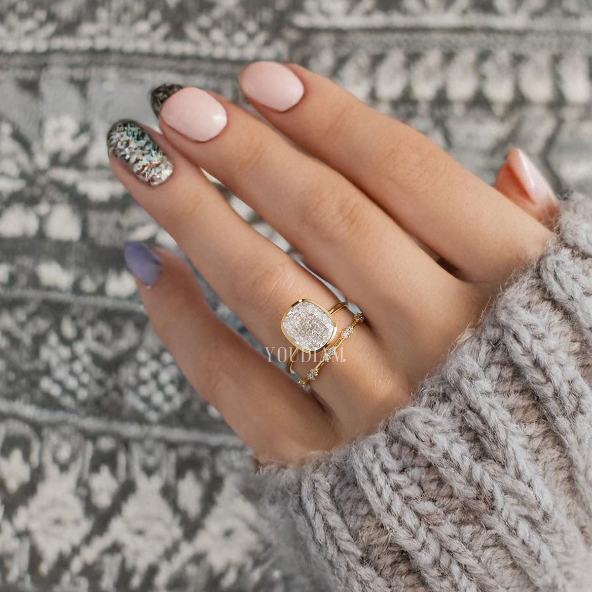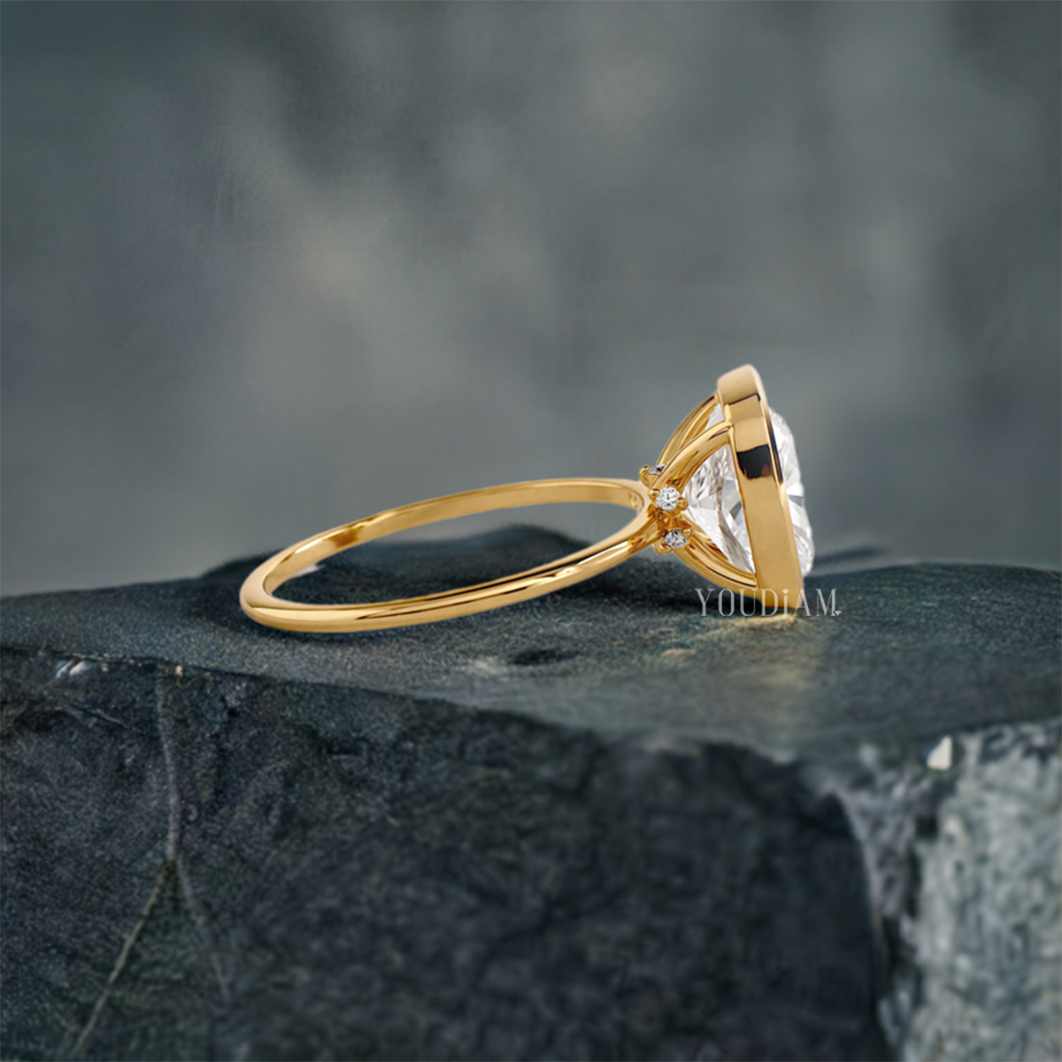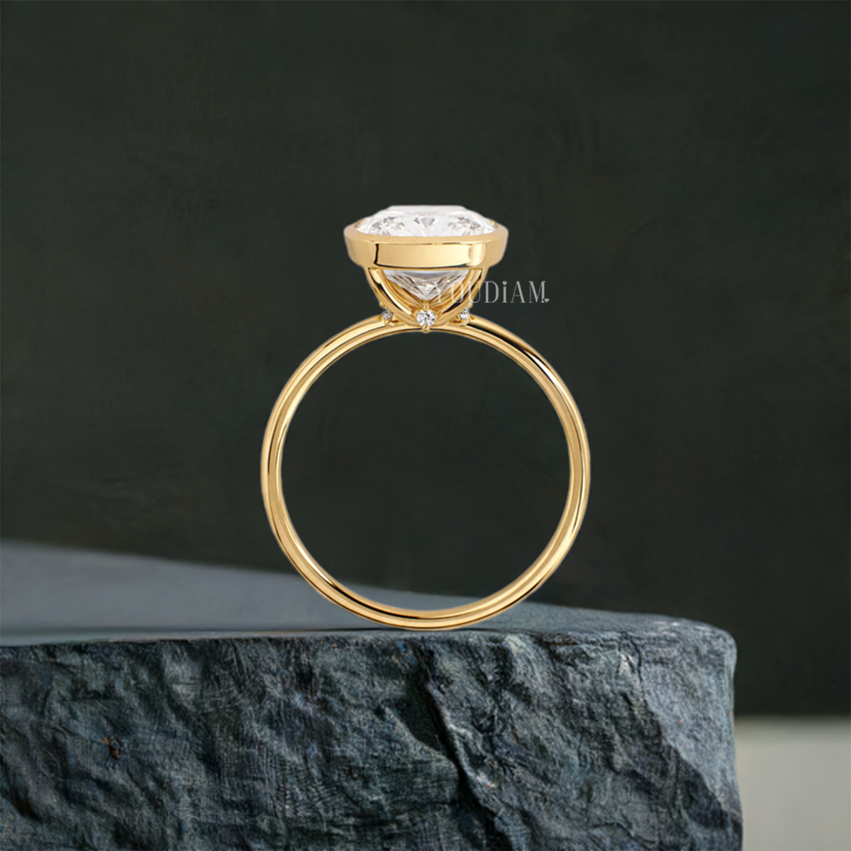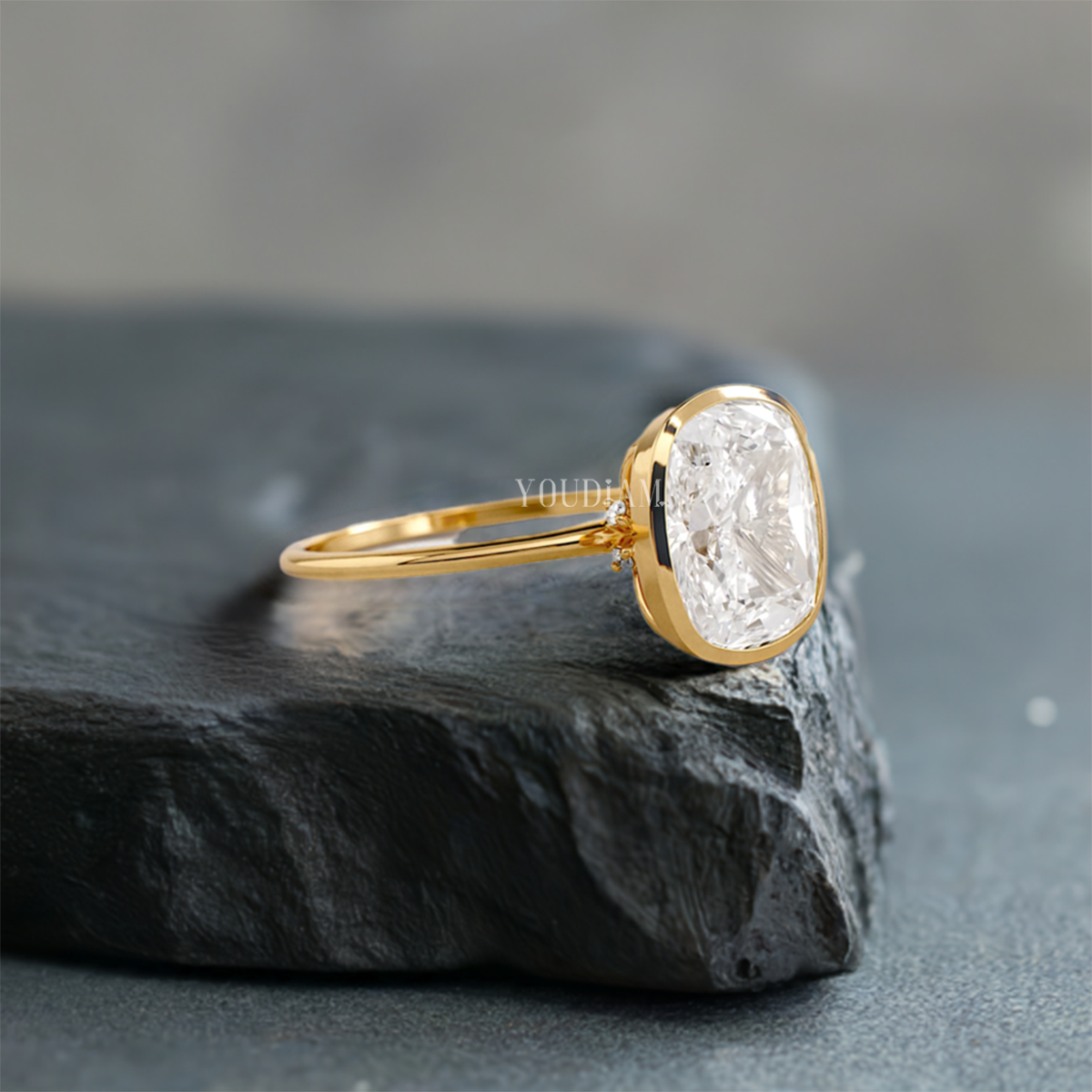 3ct Cushion Cut Lab Diamond Ring Set in Raised Bezel, Cushion Lab Diamond Ring - EUDJLR43