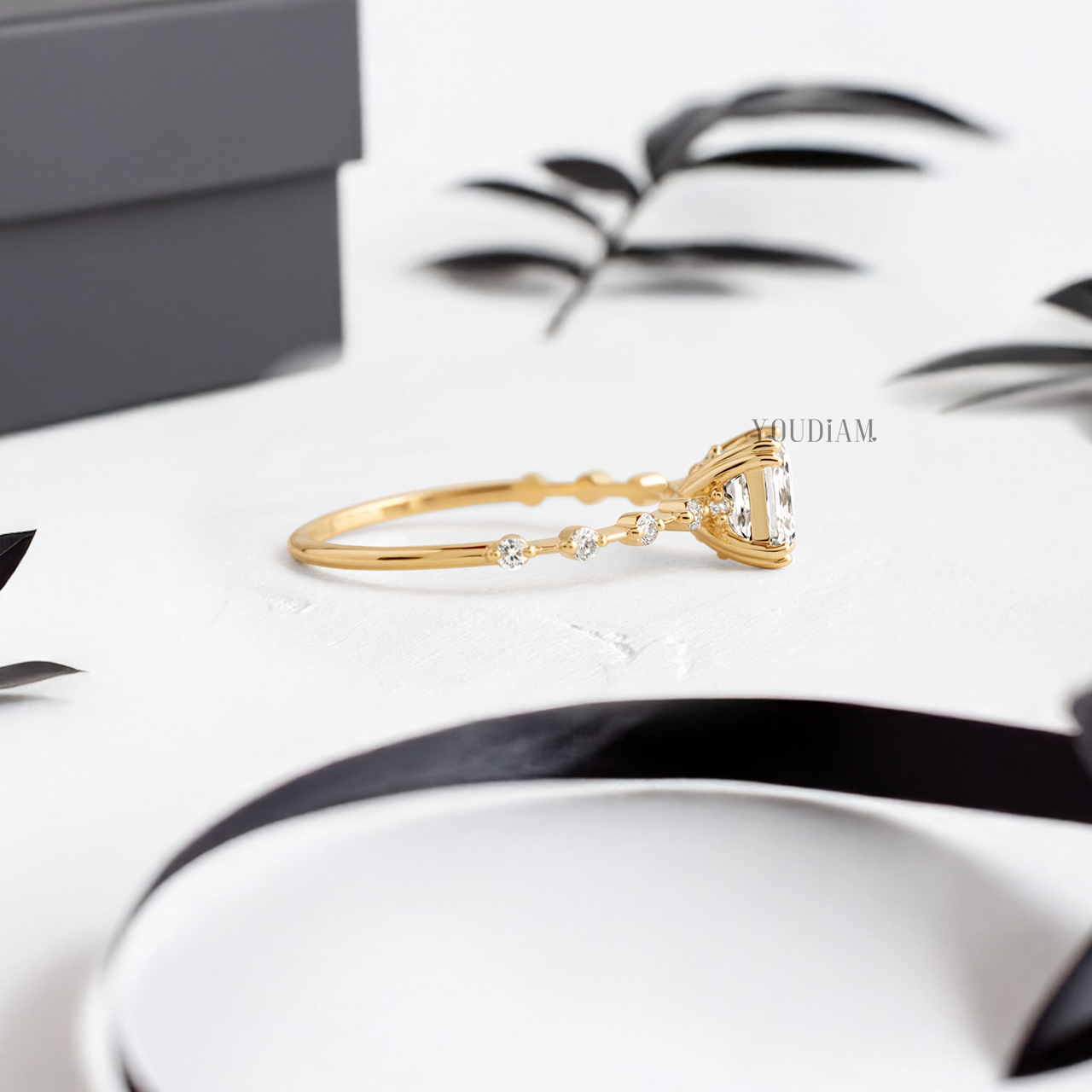 - Stones: Asscher Cut Lab Diamond and 8 side diamonds