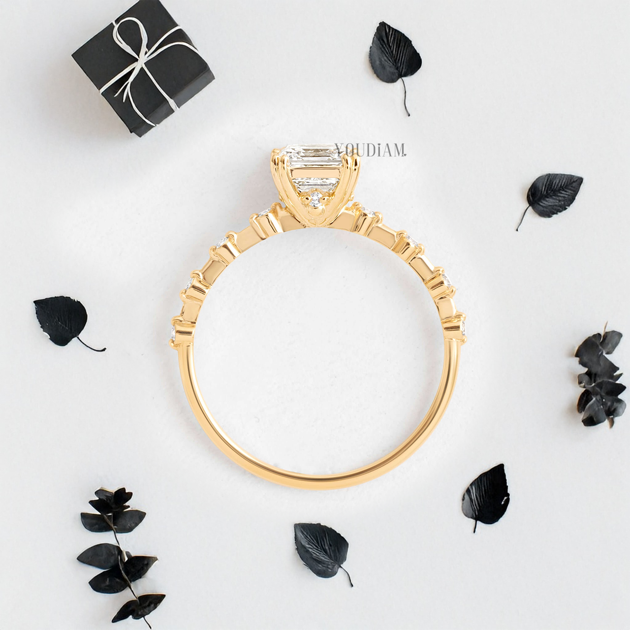 Asscher Lab Diamond in Double-Prongs and Distance Diamonds on Band Ring - YDJLR87