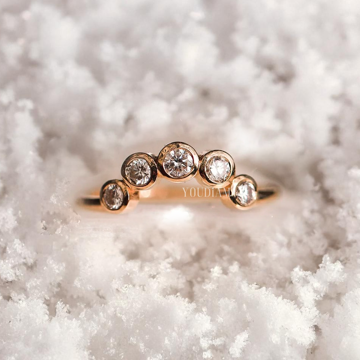 Discover the elegance of our Premium Collection with this stunning Curved Band with Five Lab Diamonds, Stacking Band In Lab Diamonds for your engagement or wedding or special occasions in life!