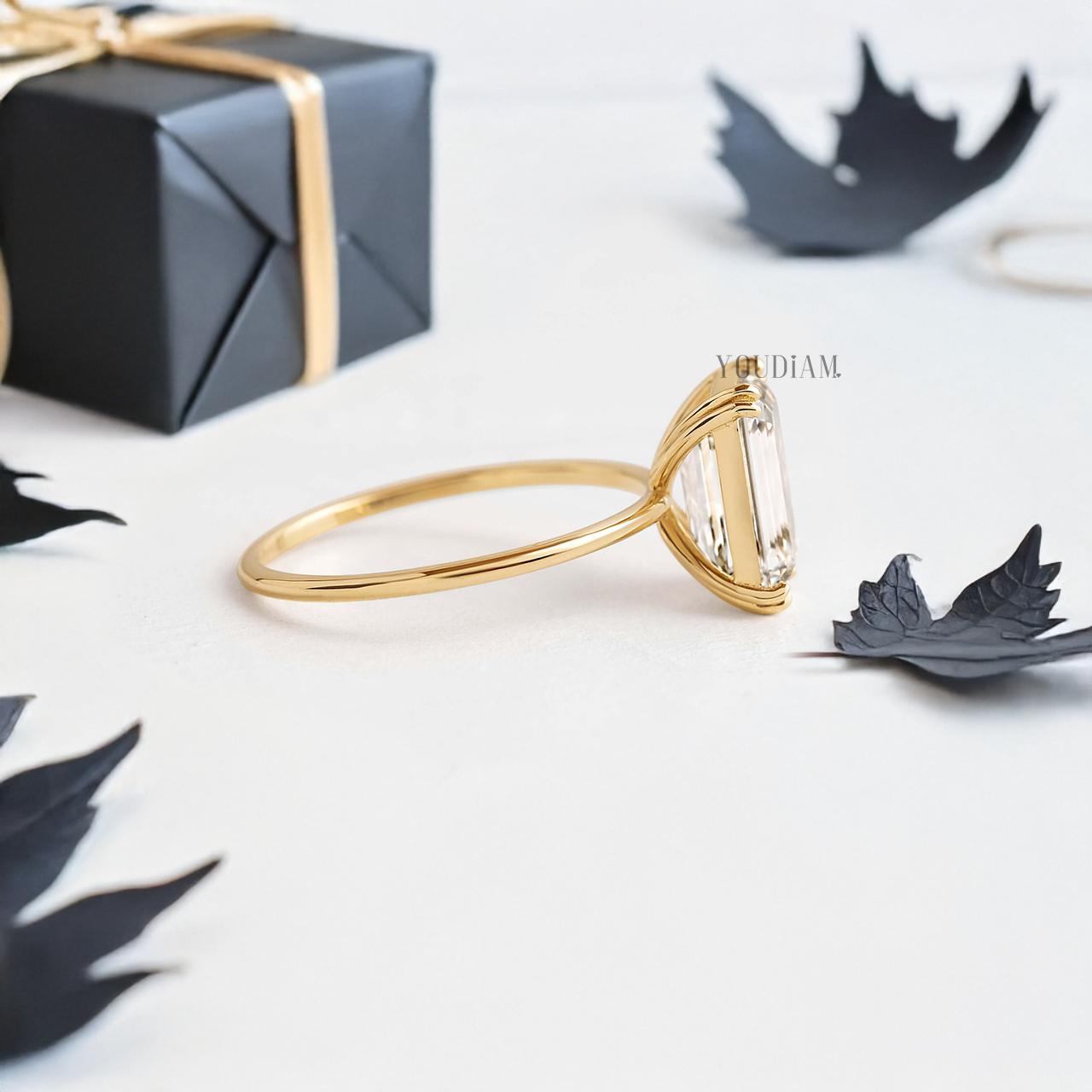 Discover the elegance of our Premium Collection with this stunning Emerald Lab Diamond in Four Double-Prongs Ring for your engagement or wedding or special occasions in life!