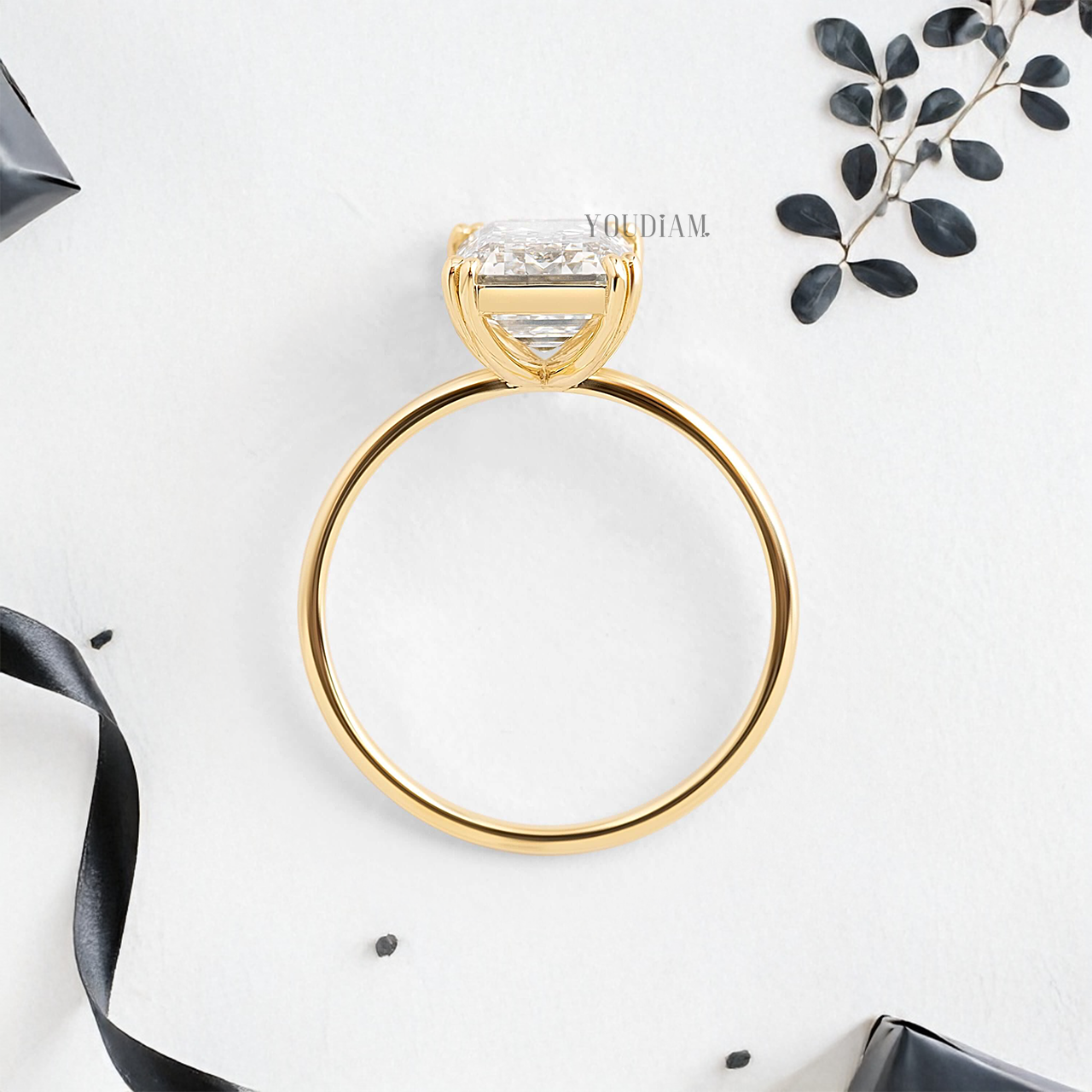 - Stones: Emerald Cut Lab Diamond and 3 side diamonds