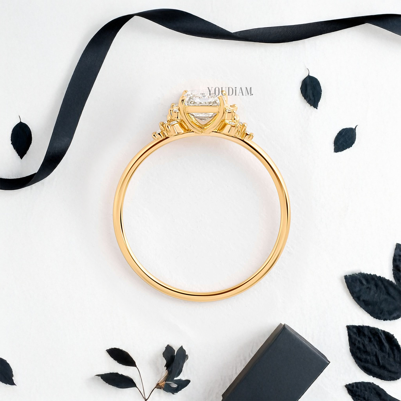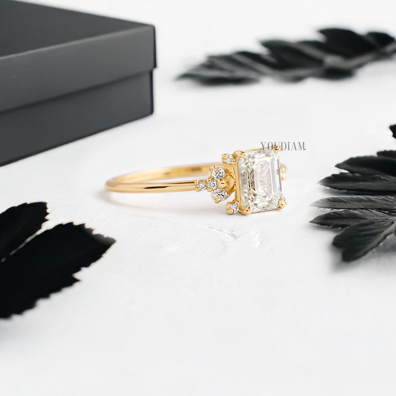 - Stones: Emerald Cut Lab Diamond and 12 side diamonds
