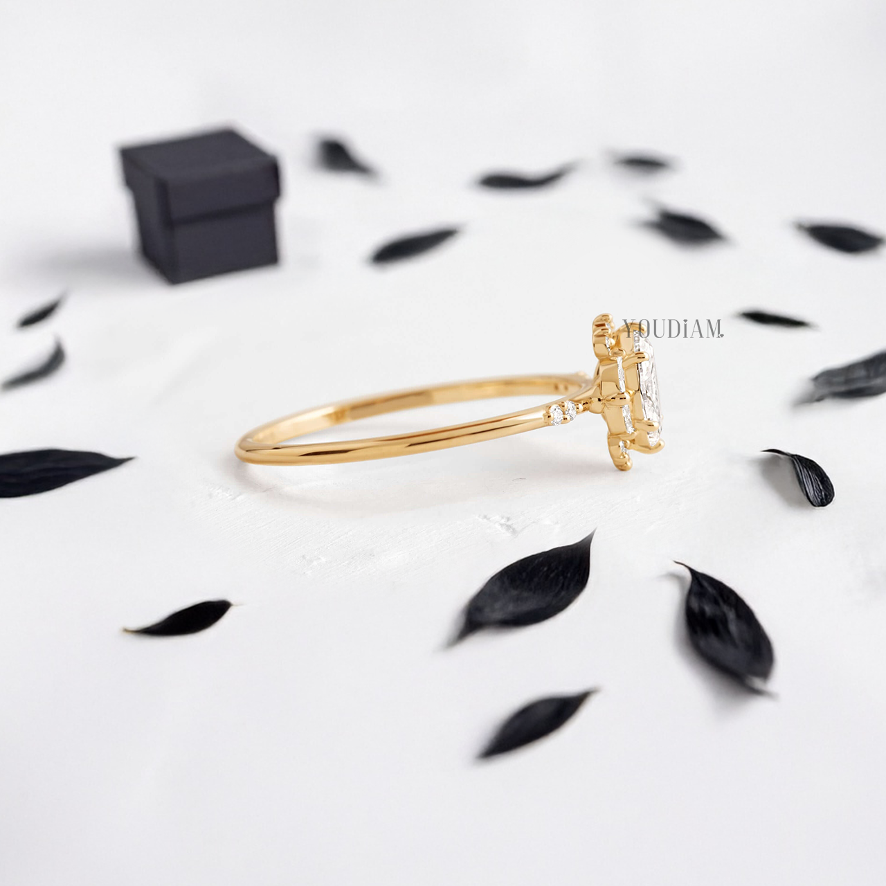- Stones: Marquise Cut Lab Diamond and 16 side diamonds