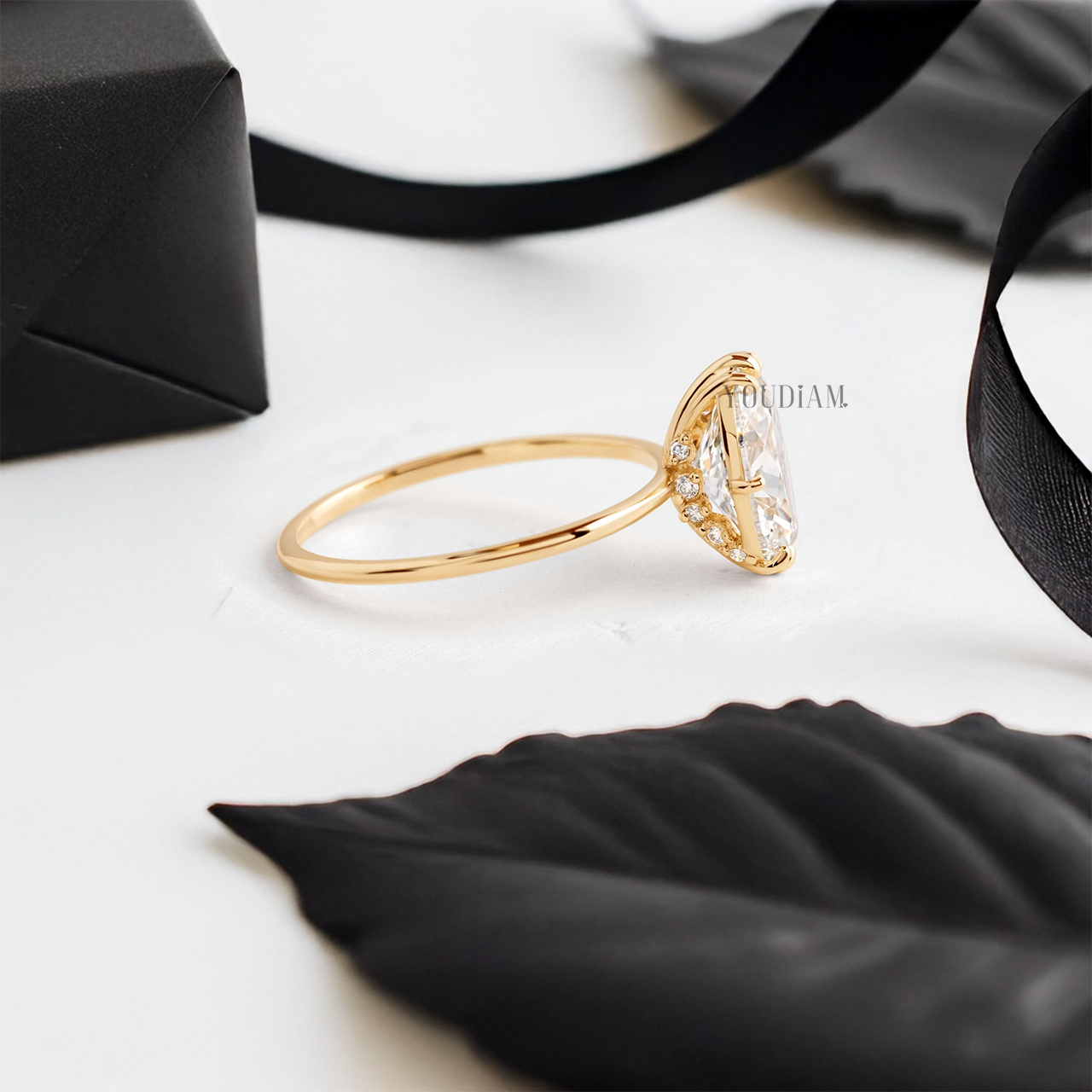 Oval Lab Diamond with Eight-Prongs with Sweep Diamonds Ring - YDJLR11