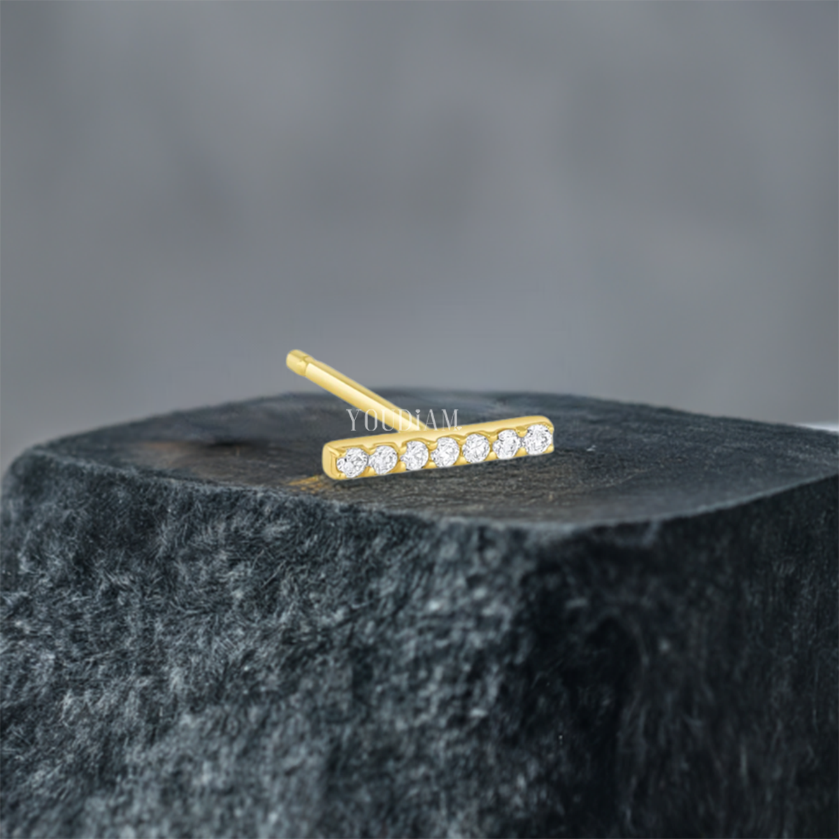 Pave Bar Stud Earrings with Lab Diamonds, Dainty Lab Diamonds Earrings - EUDER10