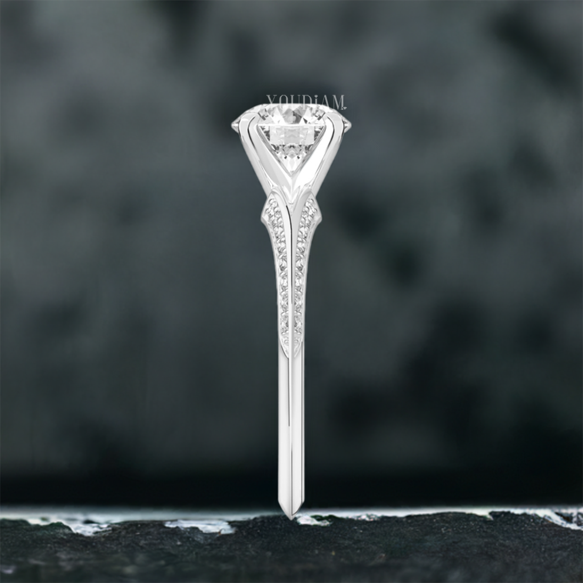 Petite Twist Lab Diamond Ring with Split-Shank Knife Edge and Pave Diamonds - EUDJLR50