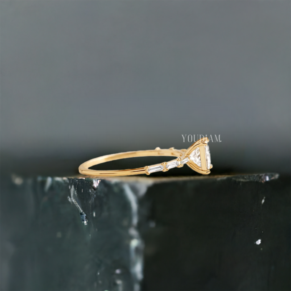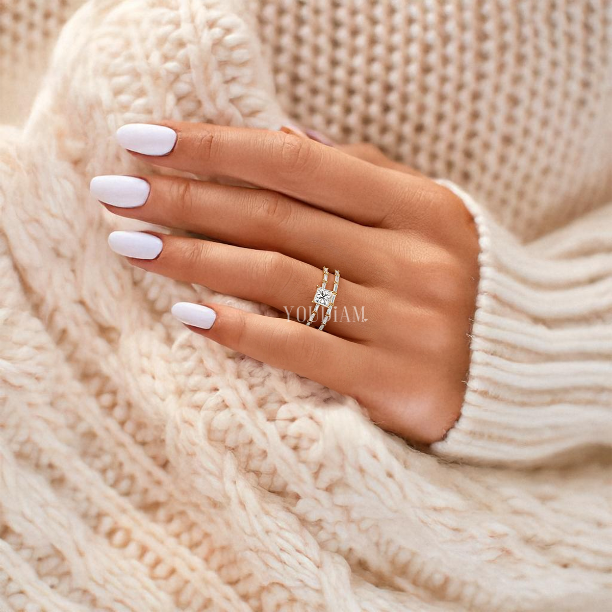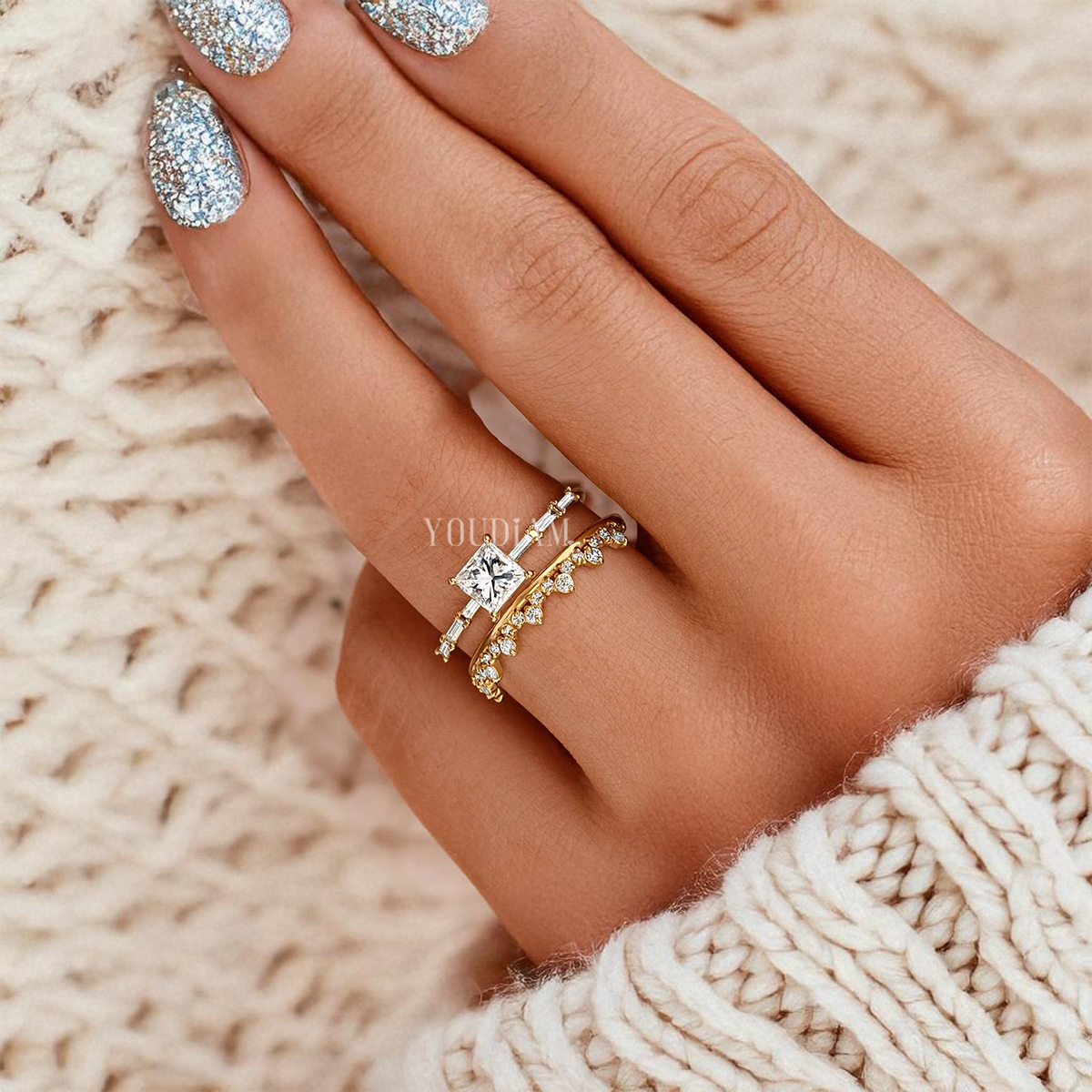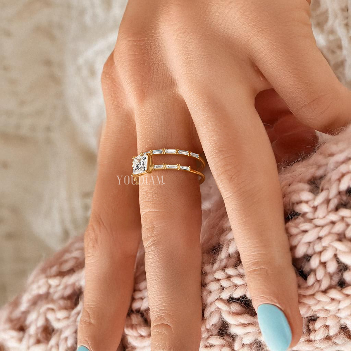 Princess Cut Lab Diamond Ring With 6 Baguette Diamonds - EUDJLR46