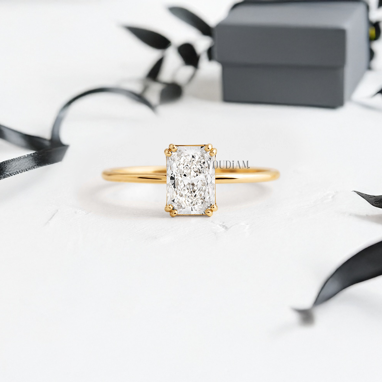 Discover the elegance of our Premium Collection with this stunning Radiant Lab Diamond in Four Double-Prongs Ring for your engagement or wedding or special occasions in life!