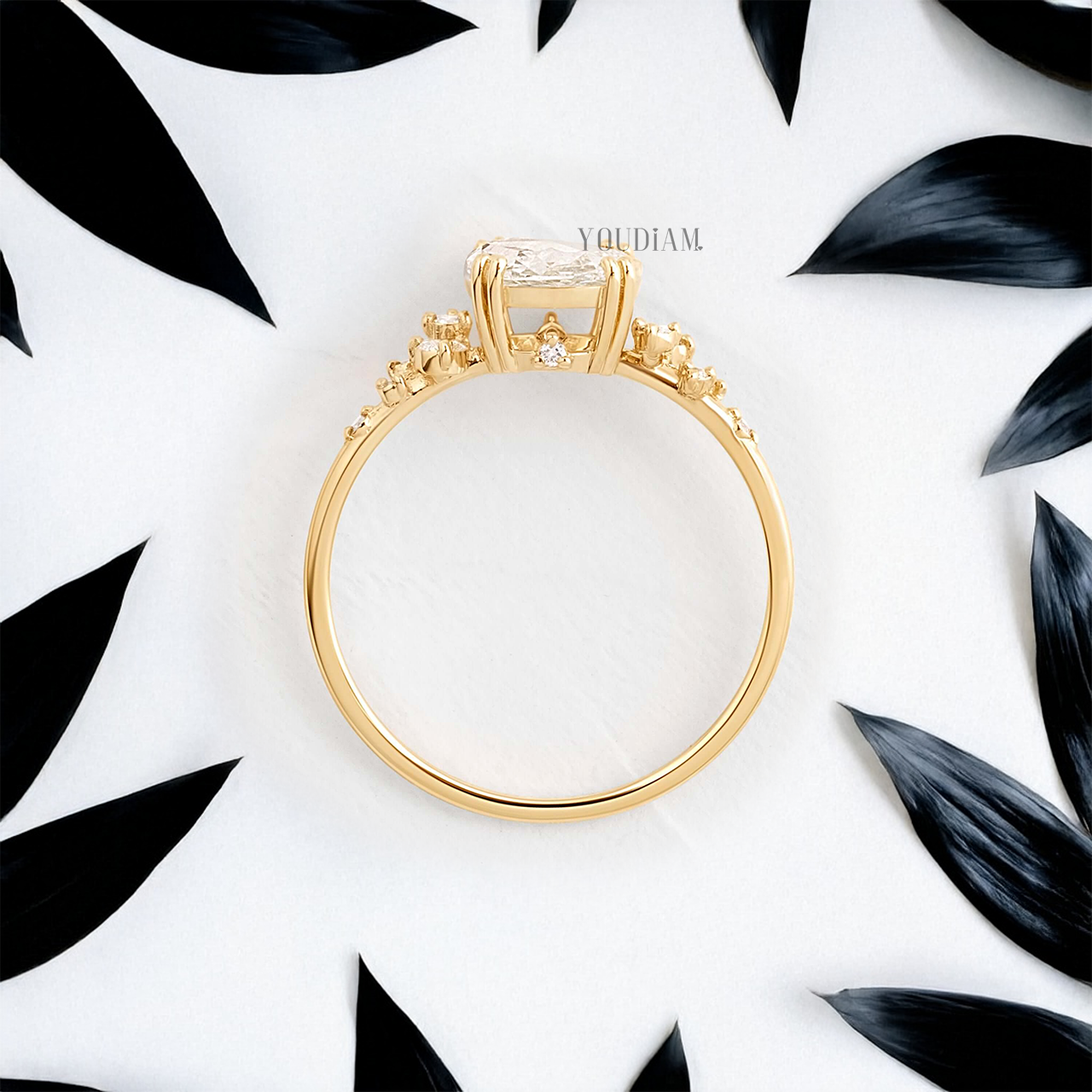 Rose Cut Round Lab Diamond with Accent Diamonds Ring - YDJLR133