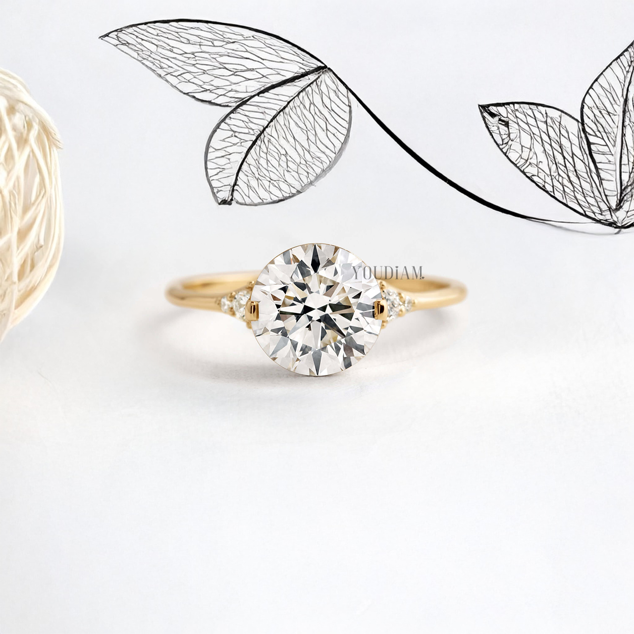Round Lab Diamond in Closed Basket with Two Prongs Ring - YDJLR16