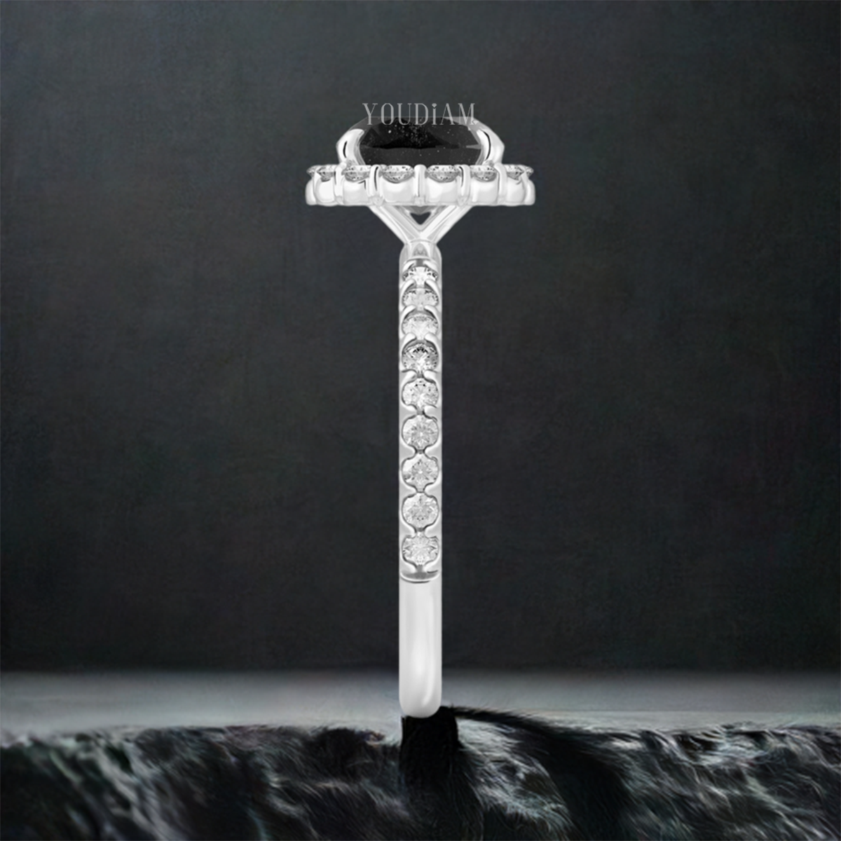 Round Salt and Pepper Diamond Ring with Halo and Dainty Band, Night Sky Style Ring - EUDJLR52