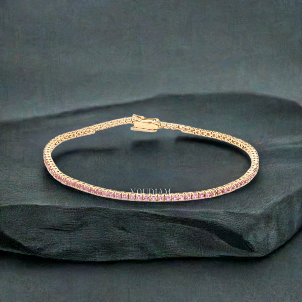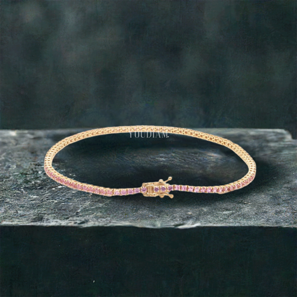 Discover the elegance of our Premium Collection with this stunning Tennis Bracelet with Pink Sapphires in Round Cut Bracelet for your engagement or wedding or special occasions in life!