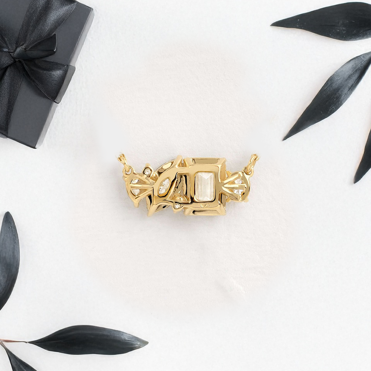 - Stone: Marquise and Emerald Cut Lab Diamonds with side diamonds