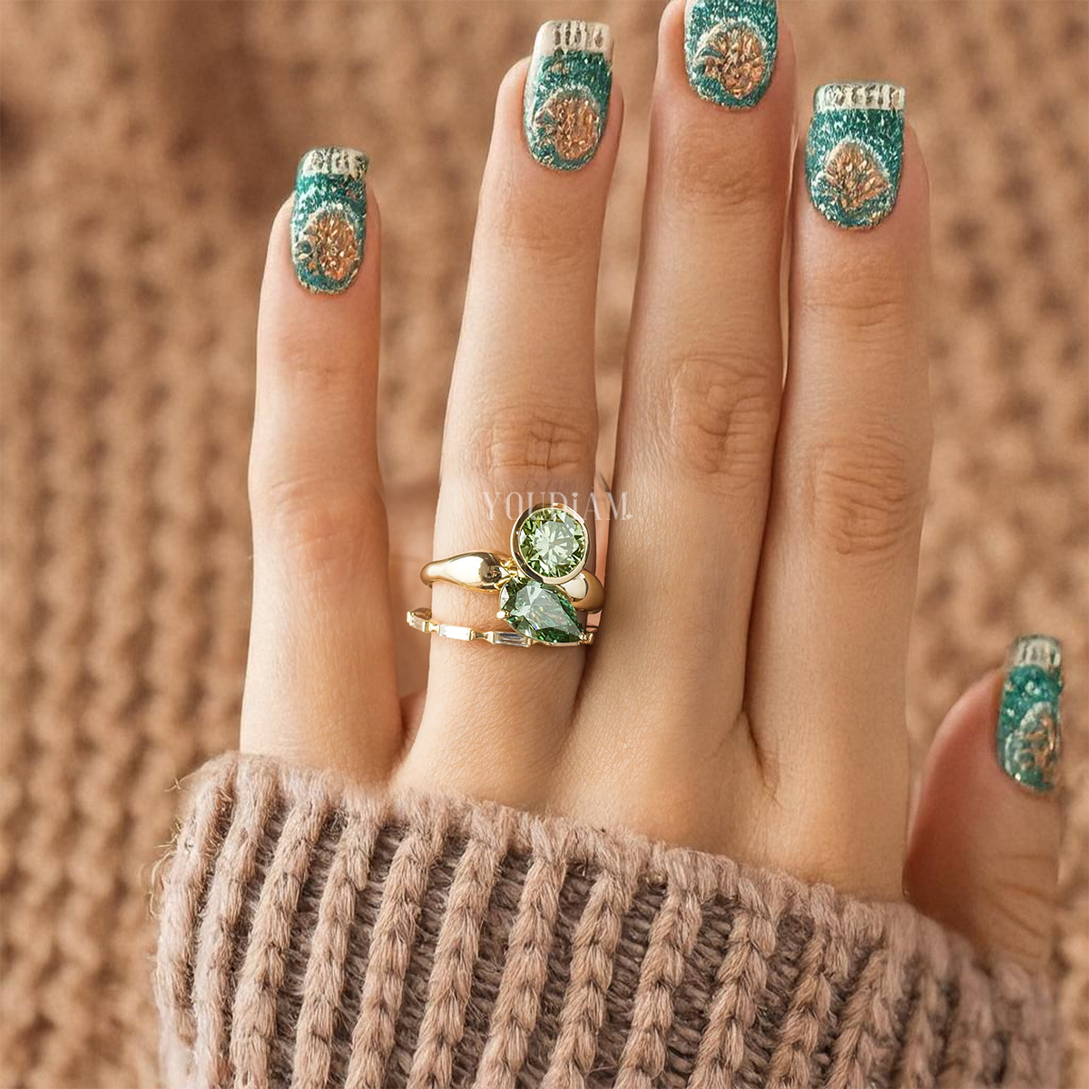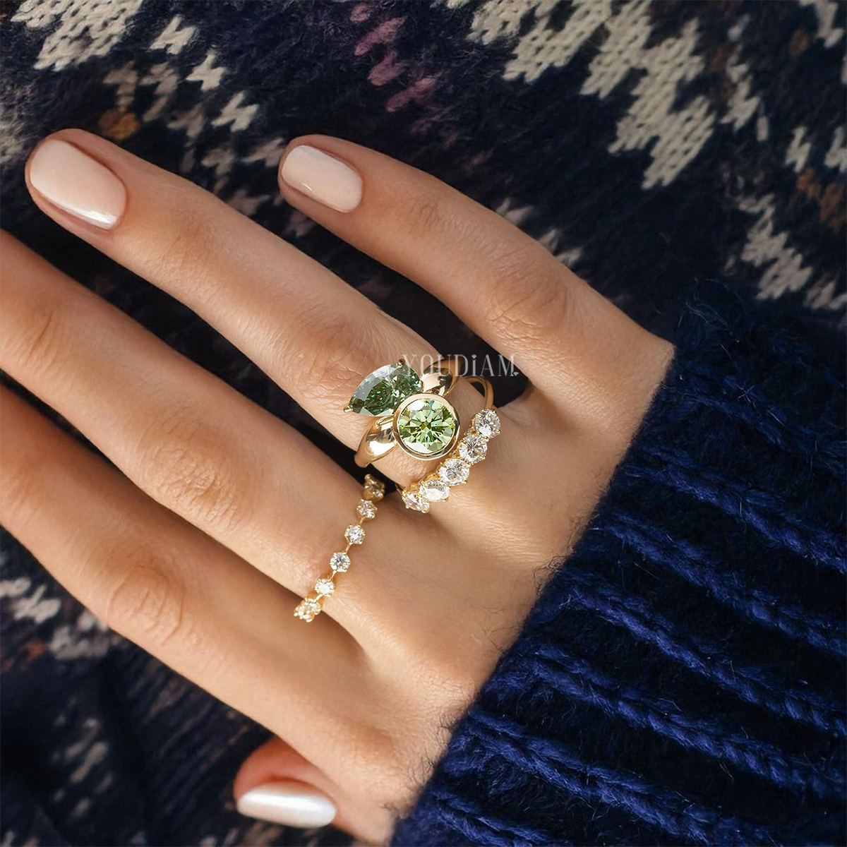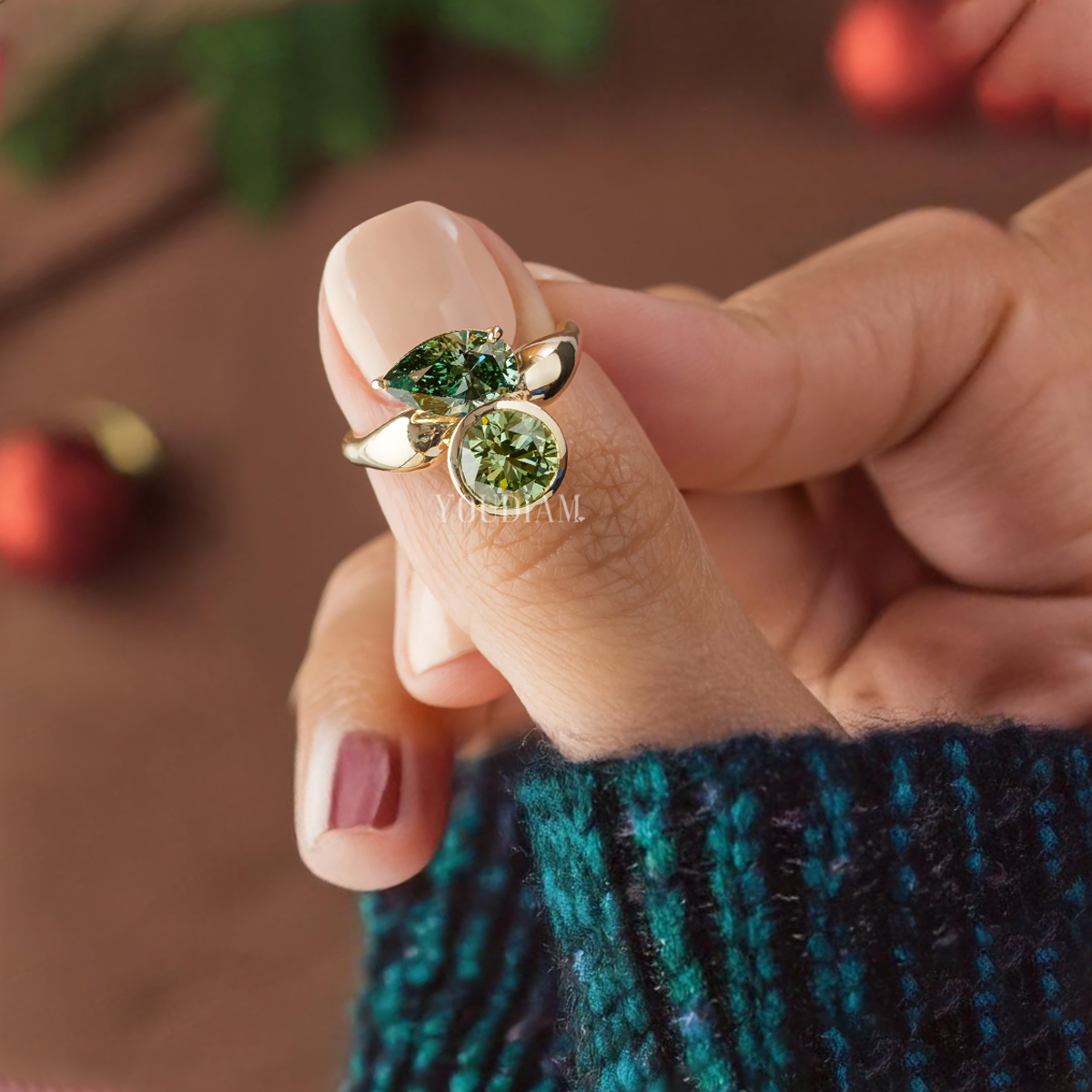 Discover the elegance of our Premium Collection with this stunning Toi Et Moi Ring with Green Pear and Round Lab Diamonds, Toi Et Moi with Pear and Round for your engagement or wedding or special occasions in life!