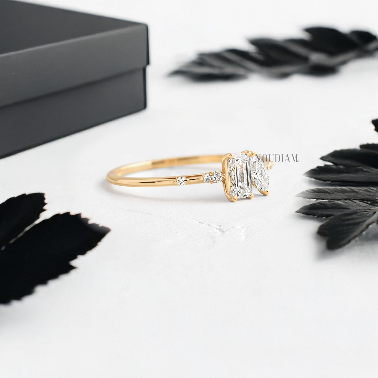 Discover the elegance of our Premium Collection with this stunning Toi Et Moi with Emerald and Marquise Lab Diamonds with Side Stones Ring for your engagement or wedding or special occasions in life!