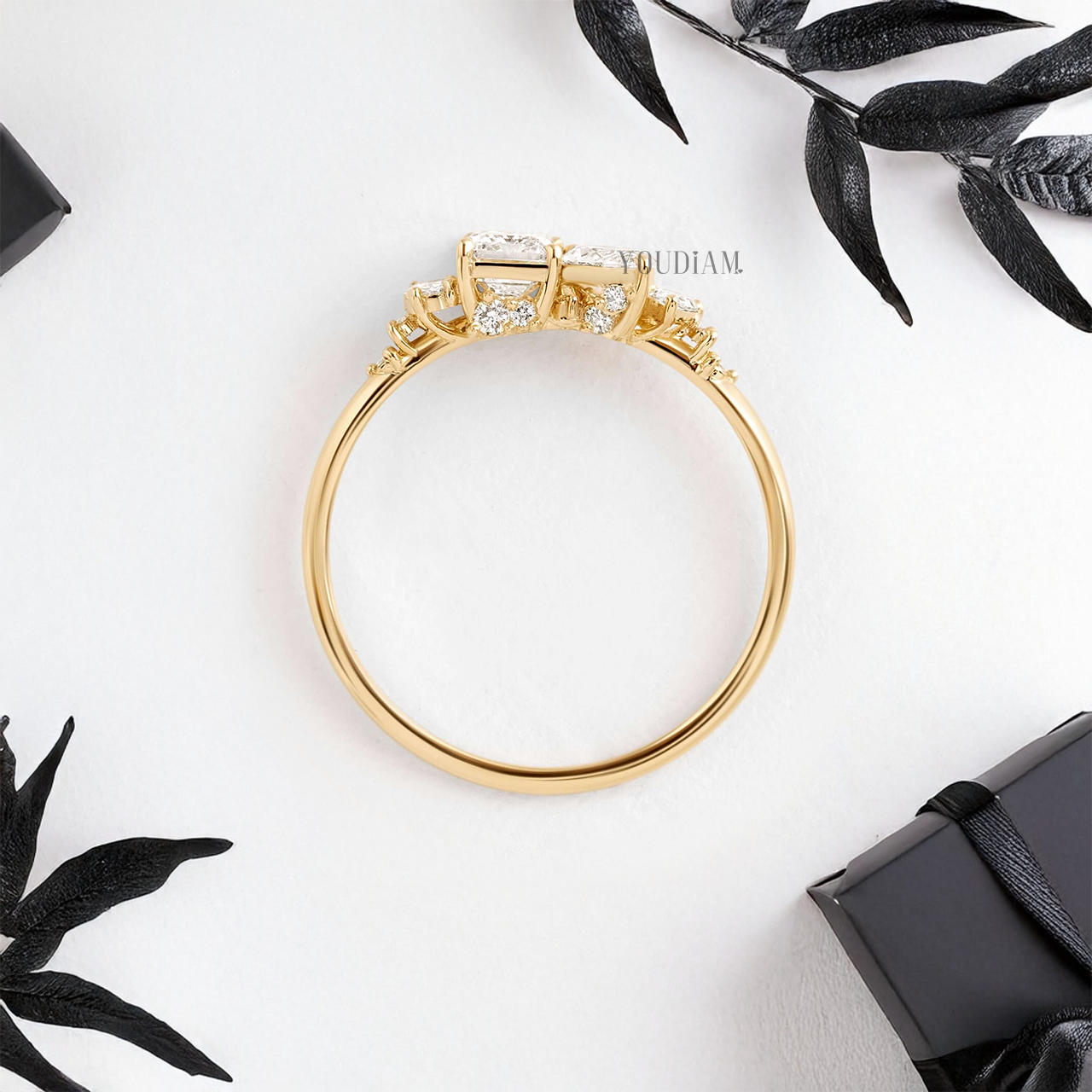 Toi Et Moi with Emerald and Marquise Lab Diamonds with Side Stones Ring - YDJLR63