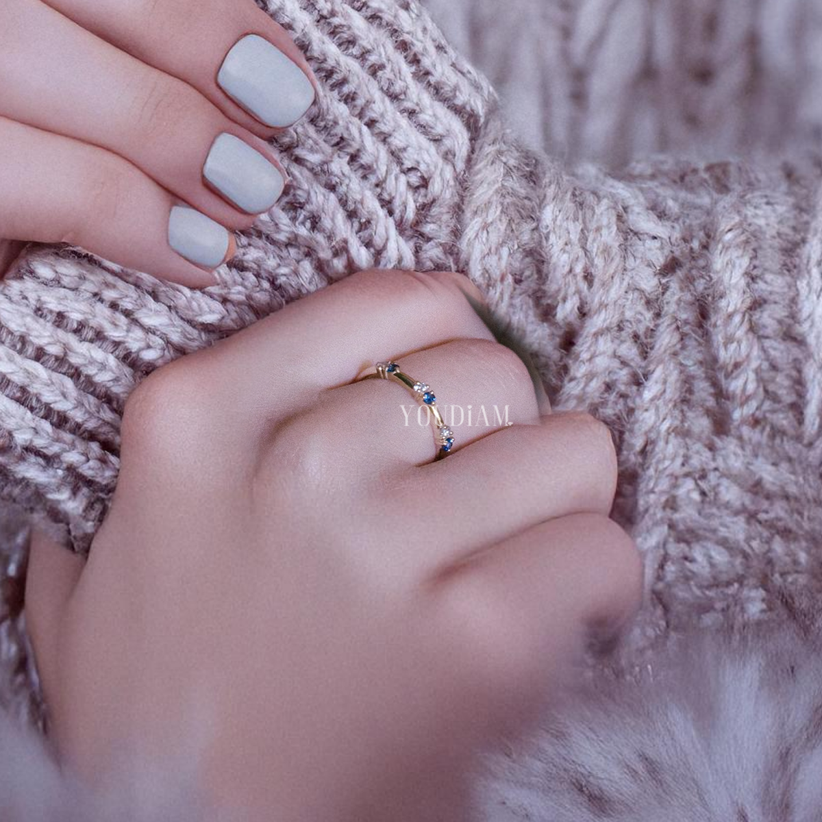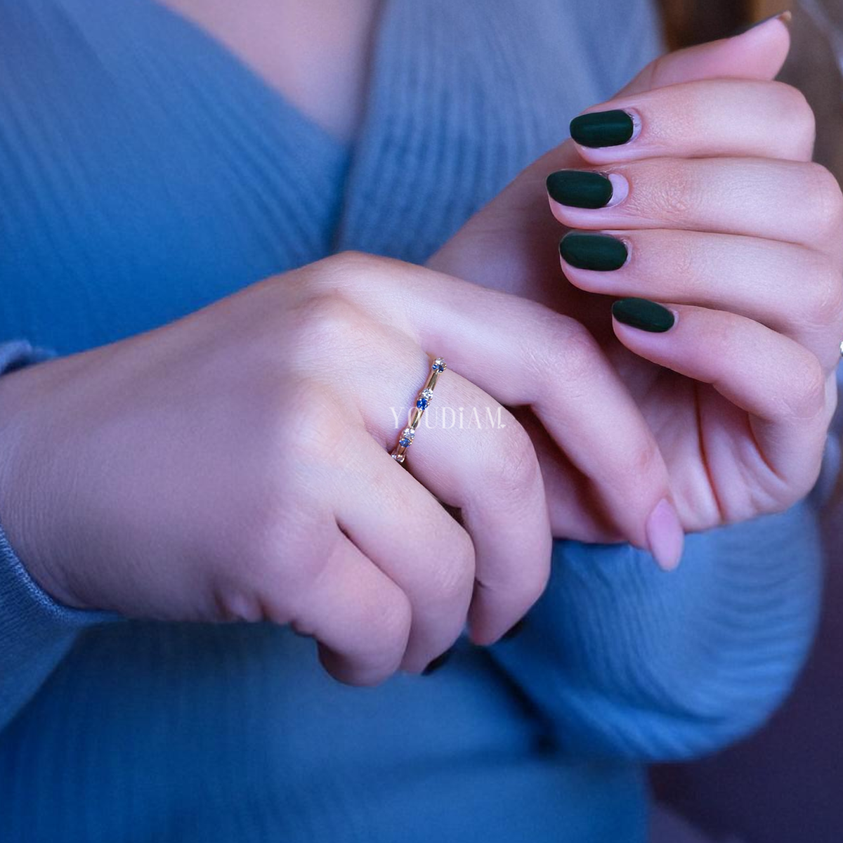 White Lab Diamond and Blue Sapphire Alternately Set Band, Blue Sapphire Band - EUDJLR60